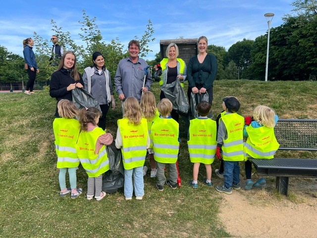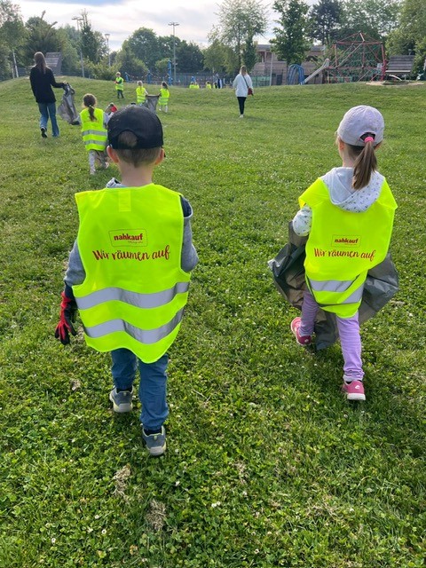 Zusammen mit Herrn Lange, Frau Buthi und unserer Bürgermeisterin Uschi Baum Ursula Baum haben wir uns auf dem Spielplatz hinter dem Zapageck getroffen. Ausgestattet mit Warnwesten, Handschuhen und Greifzangen ging es für unsere kleinen Umweltheld*innen ans Werk: Mit viel Eifer wurde Müll in große graue Säcke gesammelt – und das mit ganzem Körpereinsatz! 💪
