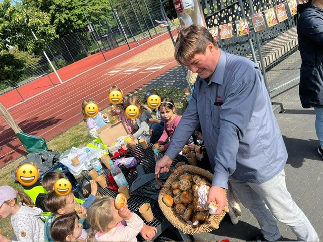 Nach der fleißigen Arbeit gab es dank Herrn Lange eine leckere Stärkung mit frischen Brötchen und Wasser, bevor es für die Kinder zurück in die Kita ging – stolz wie Oskar! 🧡